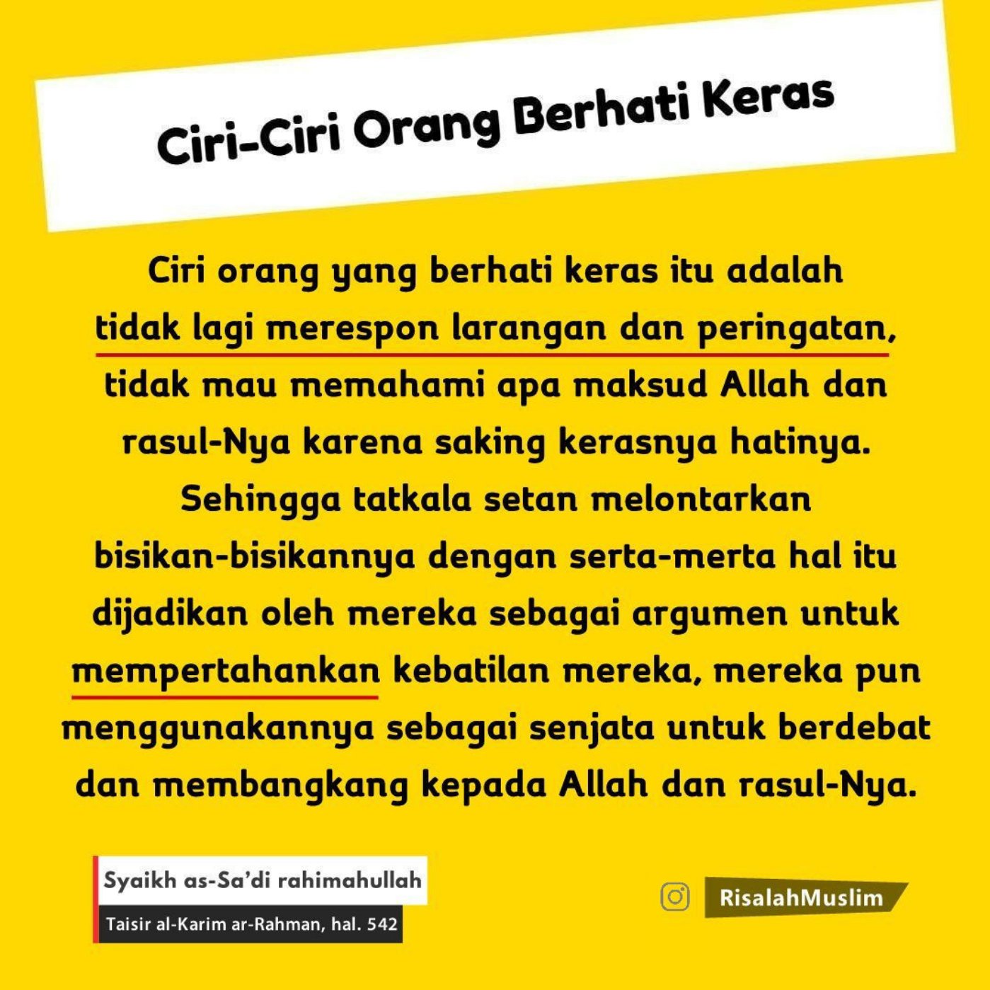 ℝ𝕚𝕤𝕒𝕝𝕒𝕙𝕄𝕦𝕤𝕝𝕚𝕞 在 Twitter 上 Ciri Ciri Orang Berhati Keras Orang Yang Berhati Keras Itu Tidak Bisa Memetik Pelajaran Dari Nasihat Nasihat Yang Didengarnya Tidak Bisa Mengambil Faedah Dari Ayat Maupun Peringatan Peringatan Teladanrasul