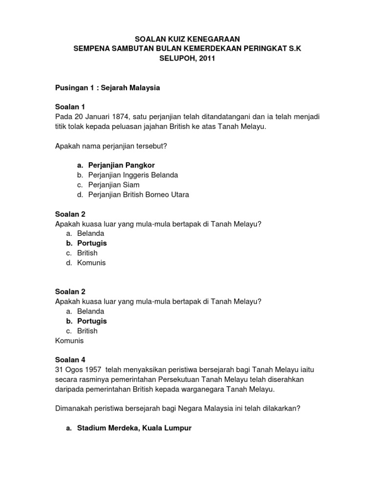 Contoh Soalan Kuiz Kemerdekaan Dan Jawapan Selangor L